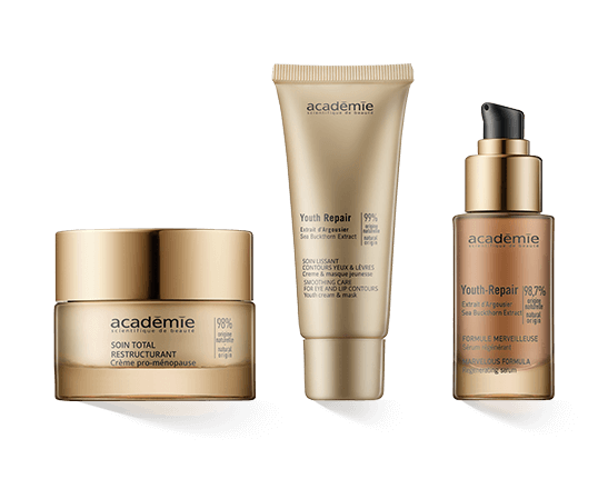 Für den zusätzlichen Schutz wurden Wirkstoffe ausgewählt, die bereits in ihrem Urzustand eine hohe Widerstandskraft aufweisen. Sanddorn gedeiht unter schwierigsten Bedingungen, erholt sich nach Rückschlägen und zeichnet sich durch seine Widerstandsfähigkeit und seinen hohen Gehalt an hautpflegenden Substanzen aus. Diese gebündelten Vorteile finden sich in allen Rezepturen von Académie Youth-Repair und werden in der Pflege um wohltuende Wellness-Effekte bereichert, die für Entspannung und ein natürliches Strahlen, ebenmässigeren Teint und einen verjüngten Look sorgen.