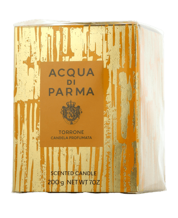 Acqua di Parma Torrone Room Fragrance Candle – sinnlich-wärmende Nostalgie im Kerzenschein. Ein zarter Duft aus geröstetem Zucker, honigsüssen Mandeln und weissem Nougat erfüllt den Raum mit der gemütlichen Stimmung italienischer Festtagskonfekte. Cremige Pistazie, Petitgrain und Sesamöl eröffnen das Bouquet, Orangenblüte und weisses Nougat schenken eine sanft süsse Herznote. Vanille, Kakao und Ecomusk runden die Komposition mit weicher Tiefe ab. Die Kerze schafft ein behagliches, warmes Ambiente und lädt zu entspannten Abenden ein.