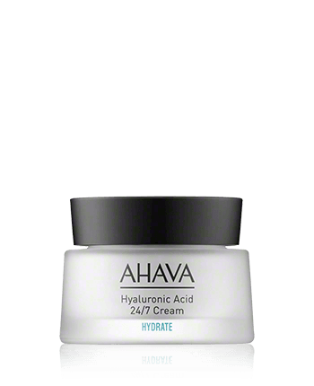 Die AHAVA Hydrate Hyaluronic Acid 24/7 Cream ist eine intensive Feuchtigkeitspflege für trockene Haut. Sie verspricht eine Langzeitwirkung für den ganzen Tag oder die Regeneration über Nacht. Neben Hyaluronsäure enthält die Creme zudem den AHAVA Osmoter, einen Mineralien- und Pflegekomplex aus den speziellen Mineralstoffen des Toten Meeres. Die Pflege ist parabenfrei und auch vegan.