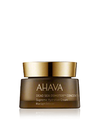 Die AHAVA Youth Boosters Osmoter Concentrate Supreme Hydration Cream ist eine Feuchtigkeitscreme mit leichter Textur und umfassender Pflege. Sie soll den ganzen Tag über angenehme Pflege spenden und dabei vor den Einflüssen von blauem Licht schützen. Dies kann helfen, vorzeitige, lichtbedingte Hautalterung zu verlangsamen. Unter anderem sind Jojobaöl sowie Extrakte von Calendula in der veganen Creme enthalten.