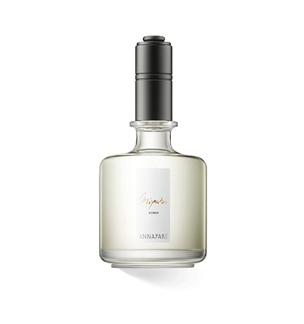 Ganz im Stil dieses Duftes und der Philosophie von Annayake, ist auch die Kampagne zu Annayake Miyabi Woman von minimalistischer Klarheit und zeigt den Flakon des Duftes vor einem einfarbigen Hintergrund. In der Version mit weissem Background kommt die zarte Eleganz des Duftes zum Vorschein, während der schwarze Hintergrund dem Parfum eine sinnliche Exotik verleiht.