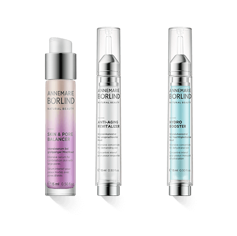 Wer eine Haut hat, die durch grosse Poren oder Entzündlichkeiten auffällt, wird den Annemarie Börlind Beauty Shots Skin & Pore Balancer nicht mehr abgeben wollen. Dieser verfügt über Phytoplanktion und dem Aktivstoff Verbascoside. Verbascoside stammt aus den Pflanzenzellen des Flieders und wirkt in der Kombination entzündungshemmend und talgreduzierend. Die Haut wird geklärt, mattiert und deren Poren werden verfeinert. Sehr anspruchsvolle Haut und solche, bei der die ersten Zeichen der Hautalterung zu sehen sind, braucht die straffenden, regenerierenden und vor allen Dingen revitalisierenden Inhaltsstoffe des Annemarie Börlind Beauty Shots Anti-Aging Revitalizer. Die Gesichtszüge entspannen sich unter der Wirkung von Szechuanpfeffer. Fältchen und Linien verschwinden oder werden minimiert aufgrund des das Jugend-Gen der Haut stimulierenden Mastix-Pistazienöles. Für eine aufpolsternd erfrischende und durchfeuchtetende Wirkung stehen die Inhaltsstoffe im Annemarie Börlind Beauty Shots Hydro Booster. Sheabutter, Squalane, Kupfer PCA, Malachitextrakt und Wirkstoffe aus dem Meer stimulieren die eigene Hyaluronproduktion, glätten und versorgen nachhaltig mit Feuchtigkeit.
