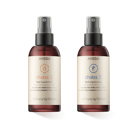 Für das Kraftchakra wirkt Aveda Chakra 3 Balancing Pure-Fume Mist Feel Intention. Um Wünsche und Ziele zu verwirklichen, unterstützt dieses Chakra eine starke Motivation und hilft, eine Richtung zu finden. Lavendel und Limettenblätter unterstützen den Duft. Der Aveda Chakra 4 Balancing Pure-Fume Mist Feel in Harmony ist für das Chakra des Herzens. Es hilft, Liebe, Empathie und Sympathie zu harmonisieren. Sandelholz, Mandarina und das Duftgras Palmarosa werden zu dem Duft verblendet. Die Kreativität unterstützt der Aveda Chakra 5 Balancing Pure-Fume Mist Feel Expressive. Das Chakra im Rachen hilft auch dabei, sich selber und seine Ideen besser auszudrücken und die Kommunikation zu optimieren. Es entsteht ein inneres Gefühl der Zuverlässigkeit und des Vertrauens, das nach aussen hin noch leichter ausgedrückt werden kann. Der Duft enthält unter anderem Rosmarin, Ylang Ylang und Grapefruit.