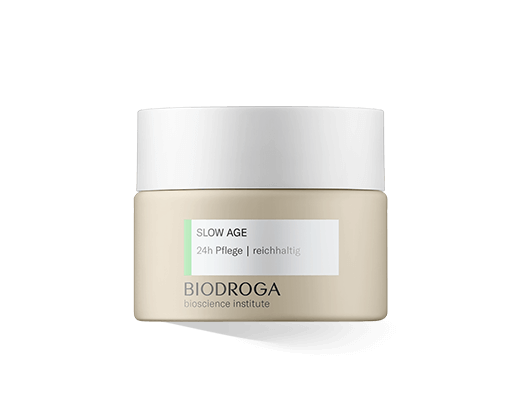 Biodroga Bioscience Institute Slow Age ist eine Pflegeserie für die Haut, die erste Anzeichen der Hautalterung zeigt. Ab ca. 25 Jahren verliert die Haut zunächst ihre jugendliche Ausstrahlung. Die Haut wird schlechter durchblutet, der Zellstoffwechsel verlangsamt sich. Dadurch wird die Haut schlechter mit Sauerstoff und anderen wichtigen Stoffen versorgt. Sie wirkt müde und fahl. Diese Pflegeserie wirkt diesem Prozess entgegen und verlangsamt ihn. Die Haut gewinnt ihre jugendliche Ausstrahlung zurück, erhält Energie und alle Nährstoffe, um lange glatt und straff zu bleiben.