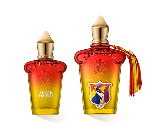 Der Flakon von Levar del Sole ist ein echter Hingucker. Im unverkennbaren Casamorati-Stil verbindet er goldene Eleganz mit Vintage-Charme. Die sanft geschwungene Silhouette und die markante, kunstvoll verzierte Verschlusskappe machen ihn zu einem Schmuckstück in jeder Duftkollektion. Der Farbverlauf von Rot zu Gelb unterstreicht die strahlende, sonnige Ausstrahlung des Duftes – ein visuelles Statement für Luxus und Exklusivität.