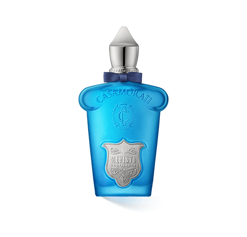 Der Werbefilm für Casamorati Mefisto Gentiluomo startet mit dem grauen Schriftzug des Namens, der sich langsam blau verfärbt. Ein junger Mann in hellem Anzug schlendert von rechts ins Bild. Er trägt hellbraune Schuhe, die Hände sind in den Taschen versteckt, auf dem Kopf sitzt eine bizarre Perücke in Weiss, die seinen Kopf mehr als verdoppelt. Die Schrift löst sich auf, der Mann geht zum Bildrand. In einer Reihe von Bildern sehen wir, wie der Mann den Flakon von Casamorati Mefisto Gentiluomo in die Hand nimmt, ihn begutachtet. Dabei wirkt das Blau des Flakons wie ein Ufo in diesem in verschiedenen Weisstönen gestalteten Bild. Der Mann scheint zu zögern. Soll er den Duft aufsprühen? Letztendlich sprüht der Mann den Duft auf sein Gesicht. Eine blaue Wolke entweicht dem Flakon und trifft Stirn, Augen, Nase, Wangen und Mund des Mannes. Im nächsten Schnitt sehen wir, wie sich die grauen Schleifen in der Perücke in ein tiefes Blau verwandeln. Auch die Augen des Mannes verändern sich. Waren sie anfangs etwas farblos, sind sie nun von blauer und grüner Farbe umrandet. Der Mann löst sich auf, die zwei goldenen C von Claudio Casamorati verschlingen sich ineinander und erscheinen auf dem Flakon. Im Schlussbild steht der blaue Flakon links im Bild. Rechts steht der Schriftzug "Casamorati from 1888 / always, nouveau".