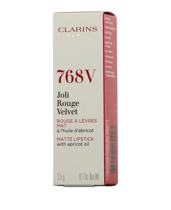 Der Joli Rouge Velvet in der Nuance 768 V Strawberry von Clarins bringt ein lebendiges Erdbeerrot auf die Lippen – frisch, modern und feminin. Die samtig-matte Textur verschmilzt sanft mit den Lippen und bietet dank Aprikosenöl und Queller-Extrakt intensive Pflege und Feuchtigkeit. Kein Austrocknen, kein Verlaufen – nur strahlende Farbe mit hohem Tragekomfort. Strawberry ist ideal für alle, die ihren Look mit einem Hauch Frische und Eleganz unterstreichen möchten.