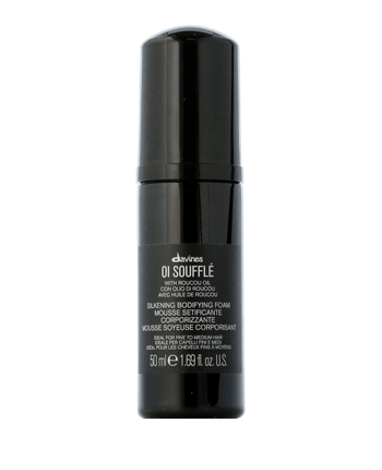 Das Davines OI Soufflé ist eine cremige Stylingpflege, die Definition und Leichtigkeit vereint. Die zarte Mousse-Textur bietet leichten Halt, bändigt Frizz und verleiht dem Haar eine seidige Struktur. Roucou-Öl spendet Feuchtigkeit, schützt vor äusseren Einflüssen und verbessert die Haarqualität sichtbar. Ideal für natürliche Looks mit sanftem Volumen und flexiblem Finish. Das Soufflé lässt sich mühelos verteilen und hinterlässt keine Rückstände – für gepflegtes Haar mit eleganter Bewegung und zartem Duft.