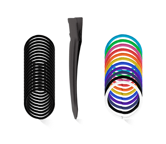 Absolut unverzichtbar bei langen Haaren sind die Denman No-Damage-Elastics, die es in Schwarz oder in knalligen, bunten Farben gibt. Sie bestehen komplett aus Nylon und Gummi, wodurch die Haare festgehalten, aber nicht abgebrochen werden wie bei Haargummis mit Metallklammer. Aus dem Friseursalon kennt man die Hair Clips Jumbo in Schwarz und Silber. Ihre leicht gebogene Form und die gummierte Oberfläche machen sie vielseitig einsetzbar. Dabei ist es unerheblich, ob die Haare komplett oder in einzelnen Strähnen geschnitten, gestylt oder gefärbt werden. Dank starker Klemmen, die man einhändig öffnen und schliessen kann, werden die Haare perfekt gehalten.