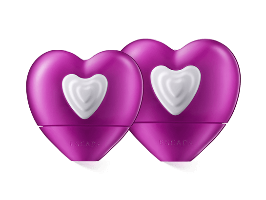 Der Flakon von Escada Party Love besticht durch seine schöne Herzform, die charakteristisch für die Love-Kollektion von Escada ist. Party Love ist in einem Violett gehalten, das an die Nacht erinnert und geheimnisvoll wirkt. Der auf Hochglanz polierte Kunststoff reflektiert das Licht deutlich, was den Eindruck von nächtlichen Partyvibes noch verstärkt. In der Mitte des Flakons ist ein mehrschichtiges, weisses Herz appliziert, das etwas Unschuldiges hat und gleichzeitig cremig-sahnig anmutet. Der schwarze Escada-Schriftzug am Fuss des Herzens geht in dem Design fast unter.