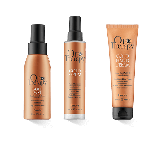 Die Fanola Oro Therapy ist eine Pflegelinie, die allen Haartypen eine umfassende Pflege mit der Kraft von Gold bietet. Die positiven Vorteile von 24-karätigem Gold sind bereits aus anderen Produkten der Hautpflege bekannt. Dazu kommt natürlich bereits beim Anblick das Gefühl von Luxus und eines entspannenden Verwöhnmoments. Die Haare sollen ebenfalls von den Mikro-Partikeln profitieren und an Brillanz zurückgewinnen.