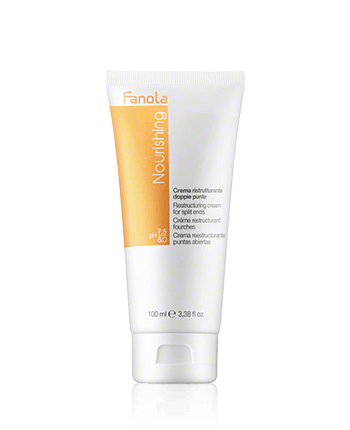 Die Fanola Nourishing Restructuring Cream for Split Ends wird bei trockenem Haar angewendet, oder wenn die Haarstruktur an den Enden Spliss aufweist. Enthalten sind Milchprotein, das die Haarfasern stärkt und ihnen Geschmeidigkeit verleiht, und Leinöl, das Feuchtigkeit spendet und vor Spliss schützt. Die Haarcreme ist einer kleinen Menge in das Haar du die Spitzen einzumassieren.