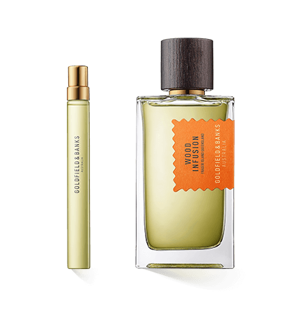 Goldfield & Banks Wood Infusion verzichtet auf eine klassische Duftpyramide. Die Komponenten des Unisexdufts fügen sich in einem facettenreichen Spiel von verschiedenen Holznoten mit süssen und ätherischen Nuancen zusammen. Indisches Sandelholz und australische Hölzer kokettieren mit saftiger Orange, Oud und indonesischem Patchouli. Begleitet wird der holzig-süsse Reigen von Amber, Moschus, italienischer Iris und australischem Lavendel. Goldfield & Banks Wood Infusion verzaubert mit einer wohligen Aura. Aromatisch, warm und würzig entführt der Duft die Sinne an ferne Orte und lässt zwischendurch seine einzelnen Duftnoten durchscheinen. Das Parfum verwandelt einen stressigen Alltag in Harmonie und verleiht seinem Träger abends das gewisse Etwas.