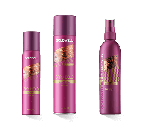 Alle Produkte aus der Serie Goldwell. Alle Sprühgold Produkte sind dermatologisch getestet. Sie sind schonend zu Haaren und Kopfhaut und eignen sich auch für empfindliches Haar. Das Haarspray von Goldwell schützt die natürliche Haarfarbe und sorgt zudem dafür, dass koloriertes Haar länger seine Farbe behält. Mit Goldwell Haarspray gelingt auch ein aufwändiges Styling ohne Probleme, gleich ob zu Hause, im Salon oder unterwegs. Entdecken auch Sie die professionellen Haarsprays aus der Serie Goldwell. Sprühgold.