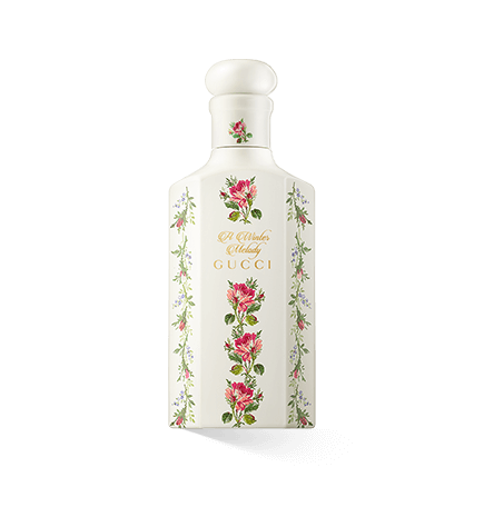 Der Flakon von Gucci A Winter Melody fällt durch seine porzellanähnliche Optik auf. Der cremeweisse Flakon erinnert an das ursprüngliche Material, in dem Parfums aufbewahrt wurden. Der Flakon selbst besteht allerdings aus Glas, das durch eine Lackierung den optischen Eindruck von Porzellan erweckt. Das Abbild wilder Rosen zieht sich über alle Seiten des sechseckigen Flakons. Eine runde Kappe schliesst die Gestaltung kunstvoll ab. Marken- und Produktname stehen in geschwungener, goldener Schrift auf der Frontseite. Das Design wirkt nostalgisch, doch der Duft zeichnet sich durch eine ausserordentliche Modernität aus.