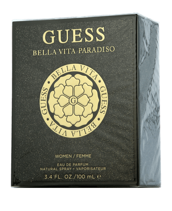 Das Eau de Toilette Guess Bella Vita Paradiso für Damen erschien im Jahr 2023 und gehört zur Familie der süss-fruchtigen Düfte. Nur wenige Sekunden nach dem Aufsprühen nehmen Sie die Noten von Birnenblüte, italienischer Mandarine und roter Beere wahr. Anschliessend verbreitet sich ein Aroma von Gardenie in Verbindung mit Jasmin und Tuberose, welches die Komposition von nun an bestimmt. Die Basis wird durch Amber, Moschus und Patchouli geformt. Für die feinsinnige Abstimmung der Aromen dieses Duftes ist Christine Hassan verantwortlich. Wer möchte da nicht zugreifen und die eigene Kollektion um Guess Bella Vita Paradiso erweitern?