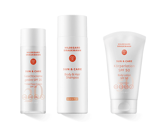 Jede Kosmetiklinie von Hildegard Braukmann basiert auf dem Wissen, das in 50 Jahren intensiver Forschung erworben wurde. Dieses immer wieder erweiterte Wissen und neueste Erkenntnisse aus der dermatologischen Forschung statten Hildegard Braukmann Sun & Care Produkte mit einem Höchstmass an Verträglichkeit und Wirksamkeit aus. Der Grundgedanke bei Hildegard Braukmann Sun & Care ist es, das natürliche Gleichgewicht der Haut durch pflegende Kräuter zu erhalten und zur Stärkung der Eigenenergie beizutragen. Die Zusammensetzungen sind immer auch für Allergiker und Neurodermitiker empfohlen. Es werden keinerlei Farbstoffe oder Paraffinöle verwendet. Erfahrungsgemäss ist die aktive und auch entspannte Bewegung im Freien gut für den Körper. Licht tut gut! Die Helligkeit und auch Wärme sind Balsam für die Seele. Automatisch wird die Stimmung angehoben, wenn der Tag hell und freundlich ist. Um sich jedoch gegen Hautalterung zu wappnen, diese passiert zu 70 % aufgrund von Sonneneinstrahlung, benötigt die Haut Schutz.