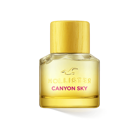 Sommerliche Leichtigkeit strahlt nicht nur Hollister Canyon Sky for Her selbst aus, sondern auch der edle Flakon. Die hochwertige Glasflasche ist in einem warmen, transparenten Gelbton mit Farbverlauf gestaltet. Mit seinem modernen Ombré-Look erinnert der Flakon an den zart gefärbten Himmel bei Sonnenaufgang. Die aussergewöhnliche Form des Flakons wiederum weckt Assoziationen an eine Bergkette. Denn der obere Rand des runden Flakons ist mit unregelmässigen Einkerbungen und abgeschrägten Kanten versehen. Eine überaus gelungene Hommage an den Namen des Duftes, denn der Flakon schafft es tatsächlich, den warmen Sommerhimmel in einer tiefen Schlucht abzubilden – wenn auch in leicht stilisierter Form. Abgerundet wird das einzigartige Design durch eine gelbe Verschlusskappe in Holzoptik.