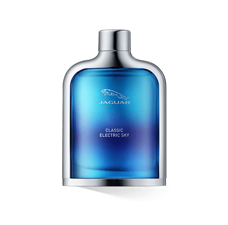Mit seinem aussergewöhnlichen Design, den weichen Rundungen und den edlen Chrom-Akzenten erinnert der Flakon des Jaguar Classic Electric Sky ein wenig an einen schicken Sportwagen. Das lässige, stilvolle Design passt ausgezeichnet zum aufregenden Duft. Jaguar setzt für das Jaguar Classic Electric Sky auf einen modernen Flakon im coolen Metallic-Look. Der Flaschenkörper ist in einem eleganten Nachtblau gehalten, das die belebende Frische und elektrisierende Dynamik des Duftes widerspiegelt. Das leicht matte Blau ist umgeben von einem hochglänzenden Rahmen in Chrom-Optik, der wie die edlen Chromleisten eines wertvollen Sportwagens wirkt. Das übrige Design ist minimalistisch-modern. Auf der Vorderseite des Flakons findet sich neben dem Jaguar Logo lediglich der Name des berauschenden Duftes in klarer silberner Schrift.