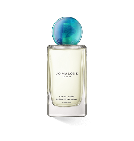Der Flakon von Sandalwood & Spiced Apricot bleibt der klaren, rechteckigen Formensprache von Jo Malone treu. Der kugelförmige Verschluss setzt jedoch einen überraschenden, verspielten Akzent. In marmorierten Blau- und Grüntönen gehalten, wirkt der Deckel wie ein Kunstobjekt: kühl, elegant und zugleich organisch. Die besondere Farbgebung spiegelt die Tiefe und Wärme des Duftes wider und schafft eine harmonische Verbindung zwischen Design und Dufterlebnis.