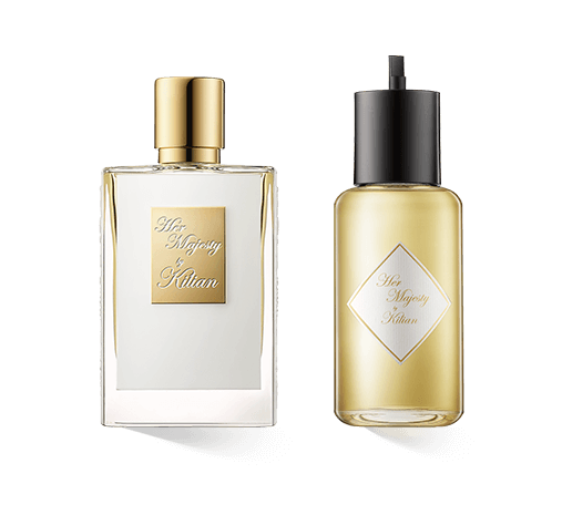 Der weiss lackierte Flakon ist ein Kunstobjekt für sich: In tiefem Relief ziert das Motiv des Schildes von Achilles, das für Verführung und Schutz steht, seine Oberfläche. Eine spiegelpolierte, goldene Metallplakette, die den Duftnamen trägt, der von Hand graviert wurde, vollendet das luxuriöse Design. Der nachfüllbare Flakon unterstreicht die Nachhaltigkeitsphilosophie von KILIAN und macht Her Majesty zu einem kostbaren Begleiter für ein ganzes Leben.
