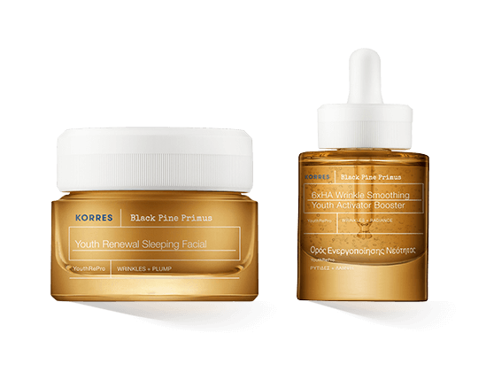 Die Korres Black Pine Primus Serie ist eine neue Gesichtspflege, die mit der Kraft der Schwarzkieferknospe die Haut sichtbar verjüngt. So wie die Knospe alle Lebenskräfte in sich vereint, gibt die Gesichtspflege der Haut neue Kraft, sich zu regenerieren und zu glätten. Die Haut wird sichtbar straffer und glatter. Durch die nährende und vitalisierende Formulierung wirkt die Haut praller, Linien und Fältchen werden deutlich gemildert, der Teint wird belebt und strahlt jugendlich. Diese Verbesserungen treten nach einer Anwendungszeit von etwa 14 Tagen ein. Die Pflegeserie eignet sich für die Haut zwischen 30 und 50 Jahren.