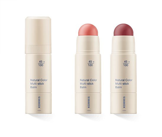 Die Korres Natural Color Multi-stick Balm Serie vereint pflegende Inhaltsstoffe mit sanften Farbtönen für Lippen, Wangen und Augen. Die vielseitig einsetzbaren Stifte sorgen für einen frischen, natürlichen Look – unkompliziert in der Anwendung und ideal für unterwegs.