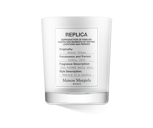 Entstanden ist die Replica Beach Vibes Candle vor dem Bild des sonnengeküssten Strandes von Calvi auf Korsika, einem der Lieblingsstrände von Martin Margiela, an dem er in den 1970er Jahren viel Zeit verbrachte. Die zerklüftete Küstenlinie der korsischen Insel inspirierte ihn zur Verwendung dekonstruierter Materialien, die er in seiner Replica-Modekollektion wiederaufleben lässt. Parallel entstand seit 2010 die Replica-Duftkollektion mit olfaktorischen Erinnerungen an besondere Orte und Momente.