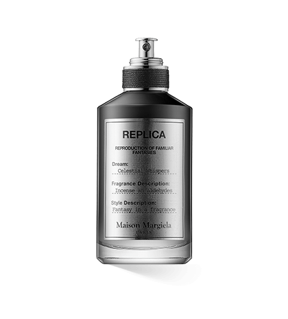 Der Flakon von Celestial Whispers spiegelt diese ätherische Qualität wider: Die schwere Glasflasche ist in tiefem Schwarz mit einem nachtblauen Verlauf lackiert und vermittelt eine mystische Tiefe, die an den Moment zwischen Dämmerung und Traum erinnert. Abgerundet wird das Design durch eine schwarze Kordel und das ikonische, elegant texturierte Replica Etikett in Silberoptik, das die Verbindung zur Maison-Margiela-Ästhetik sichtbar macht.