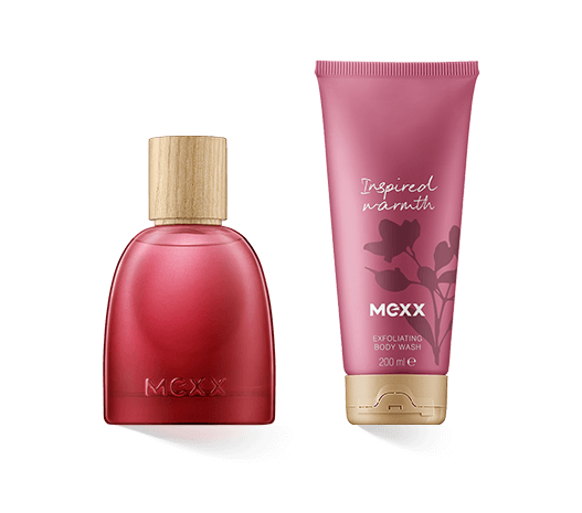 Mexx Inspired Warmth for Her ist eine Duftserie für Frauen, die ein Gefühl von Geborgenheit und Wärme vermittelt. Sie besteht aus Eau de Parfum Spray, Body Oil, Body Lotion und Body Butter, die alle den gleichen fruchtig-blumigen Duft haben. Das Eau de Parfum beginnt mit einer fruchtigen Kopfnote aus roten Früchten und Mandarine, Rhabarber sorgt für eine leichte Säure, die belebend wirkt. In der Herznote dominiert der starke, süsse Duft von Maiglöckchen. Jasmin ergänzt den blumigen Duft, Zedernholz sorgt für entspannende Eleganz. Die Basisnote aus Moschus, Vanille und Benzoe drückt eine umhüllende Wärme aus. Hier verbreitet das Parfum eine sanfte Cremigkeit und Süsse. Haltbarkeit und Sillage liegen im mittleren Bereich, so dass der Duft auch an warmen Tagen nicht aufdringlich oder zu süss wirkt.