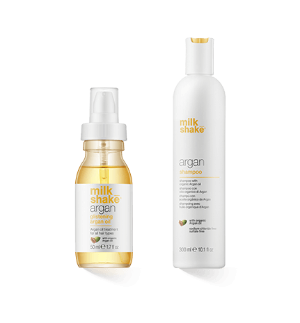 Milk_Shake Argan bringt stumpfes Haar zum Glänzen, bändigt widerspenstiges Haar und beugt Frizz vor. Die einfach anzuwendenden Produkte reinigen das Haar und machen es geschmeidig. So lässt sich das Haar perfekt stylen und glänzt gesund. Die Produkte sind für alle Haartypen geeignet, ausser für fettiges Haar, wobei das Haaröl und die Haarmaske auch die Spitzen von fettigem Haar pflegen. Schon nach der ersten Anwendung ist eine deutliche Verbesserung des Haarzustandes sichtbar.