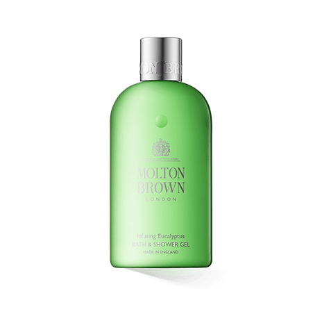 Molton Brown kreiert jeden Duft für Körper und Räume mit der Sorgfalt der Top-Parfümeure. Dies hebt die Marke von anderer Körperpflege ab. Nicht umsonst werden die Düfte in vielen luxuriösen Hotels weltweit verwendet. Sie stehen für hohe Duftkunst, durch die auch alltägliche Pflege zum Erlebnis für die Sinne wird. Infusing Eucalyptus öffnet mit Kopfnoten von Eukalyptus und würzigem Rosmarin. Dazu kommt lieblicher Lavendel, der entspannend wirkt. Im Herzen trifft wilde Minze auf Thymian und Nelken. So zieht sich der leichte Kräuterduft durch die gesamte Komposition. In der Basis treffen verführerischer Moschus und Patchouli auf reiches Zedernholz. Es ist ein Duft, der auch gut von Herren verwendet werden kann. Das Bath & Shower Gel kann für eine schnelle Dusche oder für ein entspannendes Bad verwendet werden. Das Body Scrub Peeling hilft, die Haut gründlich zu reinigen. Dazu sind Zuckerpartikel enthalten, die abgestorbene Hautschüppchen entfernen. Das Öl des Eukalyptusblattes sowie Minzaroma wirken pflegend und erfrischend.