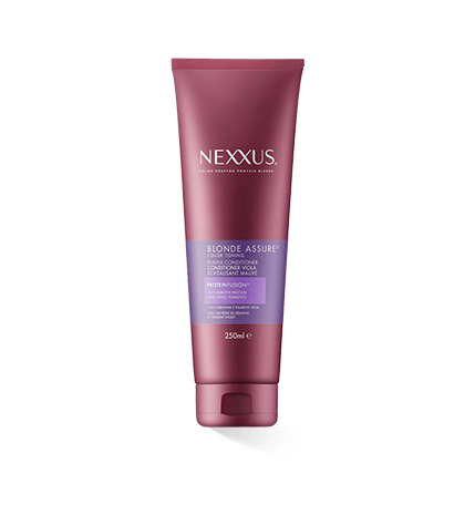 Die Haarpflegeprodukte enthalten Faserproteine und violette Pigmente, weshalb die Produkte auch eine violette Farbe haben. Diese einzigartige Proteinfusion-Mischung gleicht messingfarbene Haartöne aus und gibt platin- und silberfarbenen Haarfarben und gebleichtem Haar ein natürliches Aussehen. Mit den NEXXUS Blond Assure Artikeln bekommt jeder Blondton eine stärkere Intensität und sieht natürlich aus.