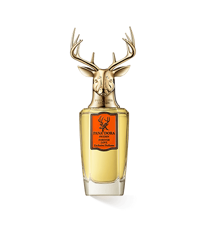 Pana Dora Sweden Forever Love zeigt seinen frisch-fruchtigen Charakter in einem Flakon, der von hellem Gelb, kräftigem Orange und Gold bestimmt wird. Die ikonische Gestaltung mit einem achteckigen, nach oben breiter laufenden Glas und einer Verschlusskappe in Hirschform wirkt edel und stark. Die Plakette im oberen Bereich der Frontseite zeigt einen orangefarbenen Hintergrund, einen messingfarbenen Rahmen sowie das Markenlogo und den Parfumnamen. Das Design fängt den wunderschönen Charakter dieses Dufts mit seinen Formen und Farben ein.