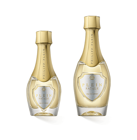 Die Gestaltung des Flakons ist typisch Philipp Plein. Sie fällt auf. Philipp Plein Fatale steckt in einem Flakon, der aussieht wie eine Champagnerflasche, was natürlich auf die Exklusivität und die Lebensfreude dieses Duftes anspielt. Fatale feiert jeden Moment und ist anregend wie prickelnder Champagner. Die abgerundete Form verkörpert das Feminine des Duftes, die goldene Farbe vermittelt den Wert des Parfums sowie dessen Eleganz. Auf einer weissen, goldumrahmten Plakette sehen wir das Logo sowie den Namen des Duftes. Damit wirkt der Flakon optimistisch, edel und positiv.