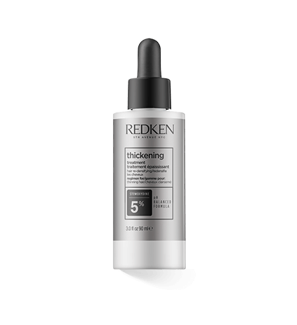 Erhältlich ist das Redken Thickening Treatment in einer glänzend silbernen Flasche mit praktischer Pipette. Die Produktbezeichnung sowie die wichtigsten Eigenschaften der Pflege sind in klarer, schwarzer Schrift aufgedruckt. Das moderne und elegante Design im Metallic-Look spiegelt die hohe Wertigkeit des stimulierenden Haarserums wider und unterstreicht seine professionelle, innovative Formulierung. Die Pipette ermöglicht eine genaue Dosierung und einen hygienischen und punktgenauen Auftrag direkt an der Haarwurzel. Ideal für möglichst schnelle und eindrucksvolle Ergebnisse.