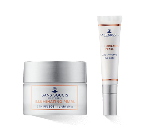 Die Sans Soucis Illuminating Pearl Pflege fördert einen ebenmässigen und strahlenden Teint, damit dieser seine jugendliche Strahlkraft länger bewahren kann. Mit Proteinen aus Perlen soll sowohl eine zuverlässige Anti-Aging-Wirkung gegen Linien und Fältchen, als auch ein schöner Glow erreicht werden. Der Wirkstoff regt die hauteigene Produktion von Elastin und Kollagen an. Auf diese Weise kann die Elastizität der Haut erhalten werden. Zugleich verspricht die Pflege einen positiven Effekt bei übermässiger Pigmentierung. Diese kann die Haut schnell unruhig und älter wirken lassen.