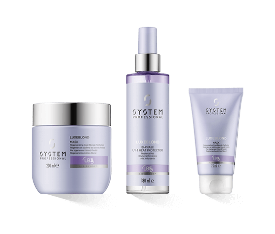 Die System Professional LipidCode LuxeBlond Kollektion steht für satte, leuchtende Blondtöne ohne unerwünschten Rotstich. Die Systempflege ist als Feuchtigkeitspflege und Reparatur für blondes Haar entwickelt worden.
