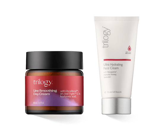 Die Produkte der aus Neuseeland stammenden Pflegeserie Trilogy Moisturisers enthalten kostbare Bestandteile, die Naturkosmetik-zertifiziert sind. Der für Trilogy verwendete Inhaltsstoff ist Rosapene. Dieser schützt vor einer vorzeitigen Hautalterung. Rosapene besteht aus einer Komposition aus Hagebutte- Tomaten-, Cranberry- und Acaisamenöl. Die darin enthaltenen Vitamine sorgen für einen ebenmässigen Teint, helfen gegen Unreinheiten, spenden der Haut Feuchtigkeit und mildern Hautschäden. Aufgrund seiner regulierenden Wirkung ist Hagebuttenöl sowohl für normale, als auch für fettige und trockene Haut geeignet.