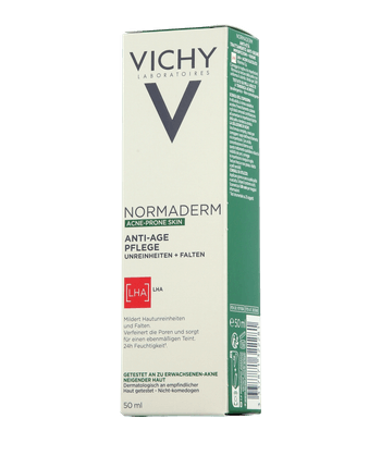Mit Vichy Normaderm Anti-Age Resurfacing Care gibt es eine spezielle Pflege für Haut ab 30 Jahren, die zu Unreinheiten neigt. Die Formel vereint Anti-Falten-Pflege in Form von Vitamin C mit klärenden Wirkstoffen wie Glycolsäure und LHA. Erweitere Poren, Pickel, Rötungen oder erste Fältchen sollen so gleichermassen gemildert werden.