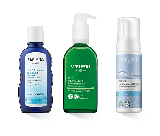 Die 2-in-1 erfrischende Reinigung startet mit einem sanften und ergiebigen Peeling. Mit ihm werden Ablagerungen, Mitesser, Talg, überschüssiges Hautfett und Verschmutzungen beseitigt. Im Anschluss wird die Haut mit Olivenölen sowie Extrakten aus Eibischwurzeln und Bio-Hamamelis gepflegt und geklärt. Es entsteht ein gleichmässiger, frischer und geschmeidiger Teint. Die milde Reinigungsmilch ist auch für Personen mit empfindlicher Haut und Allergiker geeignet. Sie verfügt über eine besonders zarte Textur, die die Haut erfrischt, belebt und reinigt. Verschmutzungen, Talg, Ablagerungen und überschüssiges Hautfett werden gründlich entfernt. Dies sorgt für ein ebenmässiges, frisches und geschmeidiges Hautbild. Die Haut wird mit Feuchtigkeit versorgt, und die Hautbarriere wird gestärkt. So kann die Haut Trockenheit und schädlichen Umwelteinflüssen trotzen. Das belebende Gesichtswasser bringt müde und schlaffe Haut wieder in Form. Es wirkt erfrischend und belebend. Dafür sorgt auch der fruchtig-frische Duft. Zudem reinigt und klärt das Gesichtswasser die Haut. Die Poren werden von Ablagerungen, Talg und Verschmutzungen befreit. Die Haut wird beruhigt, und Hautirritationen werden schnell gelindert. Das belebende Gesichtswasser eignet sich auch zur Vor- und Nachbereitung der Rasur. Der zarte Reinigungsschaum von Weleda ermöglicht eine gründliche und sanfte Reinigung von Gesicht, Hals und Dekolleté. Der Schaum hat eine sanfte Textur, mit der aber trotzdem ein sanftes Peeling möglich ist. Es entsteht ein reines und makelloses Hautbild. Zudem wird die Haut erfrischt und tonisiert. Der Teint erhält eine gleichmässige, frische und geschmeidige Struktur. Bio-Hamamelis, Eibischwurzel, Wildrosenblätter und ätherische Öle pflegen und beleben die Haut. Perfektionieren auch sie ihre Hautreinigung mit 2-in-1 erfrischende Reinigung, milde Reinigungsmilch, belebendes Gesichtswasser und zarter Reinigungsschaum aus der Serie Weleda Reinigung.