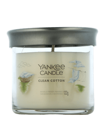 Der Yankee Candle Signature Tumbler Clean Cotton bringt die Frische sonnengetrockneter Baumwolle direkt in Ihr Zuhause. Der Duft kombiniert reine weisse Blüten, eine zarte Brise und einen Hauch von Zitrone – wie frisch gewaschene Wäsche an einem Sommertag. Die zwei Dochte und die hochwertige Sojawachsmischung garantieren ein sauberes, gleichmässiges Brennen. Mit seinem eleganten Design fügt sich der Tumbler stilvoll in jedes Ambiente ein. Clean Cotton – zeitlos, frisch und belebend.